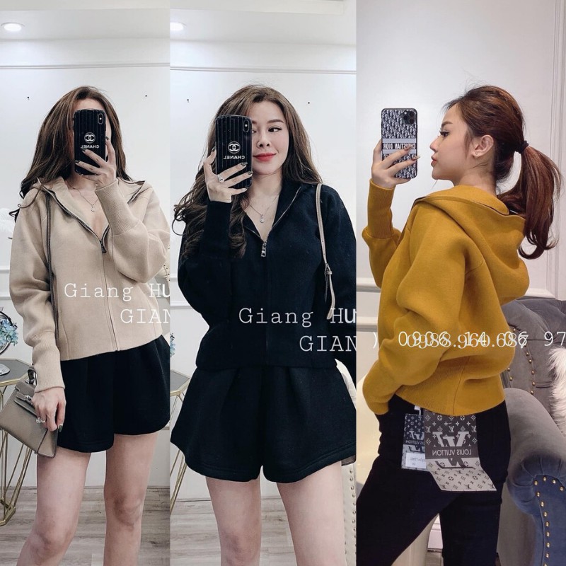 Áo khoác len có mũ khóa kéo chất len ép kiểu dáng trẻ trung dễ mặc có 4 màu