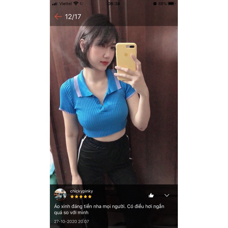 Áo len mông cộc tay croptop cổ bẻ pha viền cổ hot hit (20542#) free ship